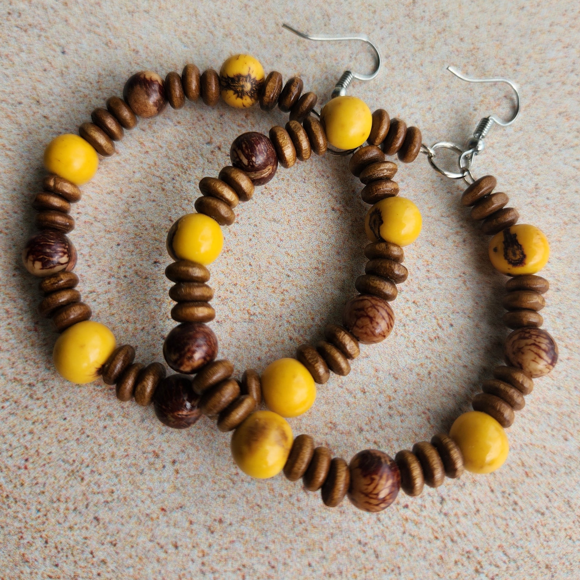 Our beads are made from wild harvested material, they are polished, hand drilled and dyed by Amazonian artisans. As each bead is a seed or part of a shell, designed by Mother Nature herself and hand worked, there are variations in shape, size and color from bead to bead.